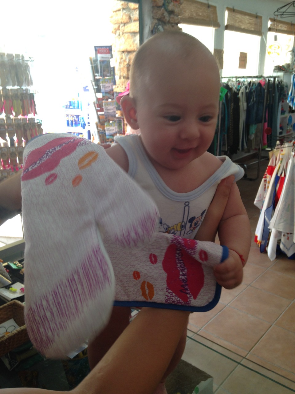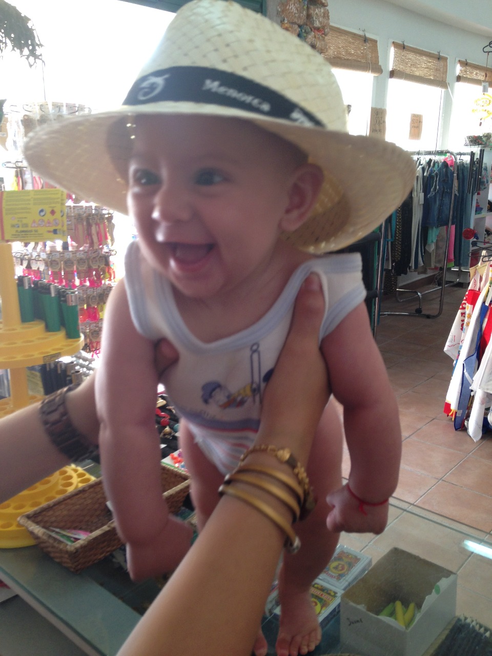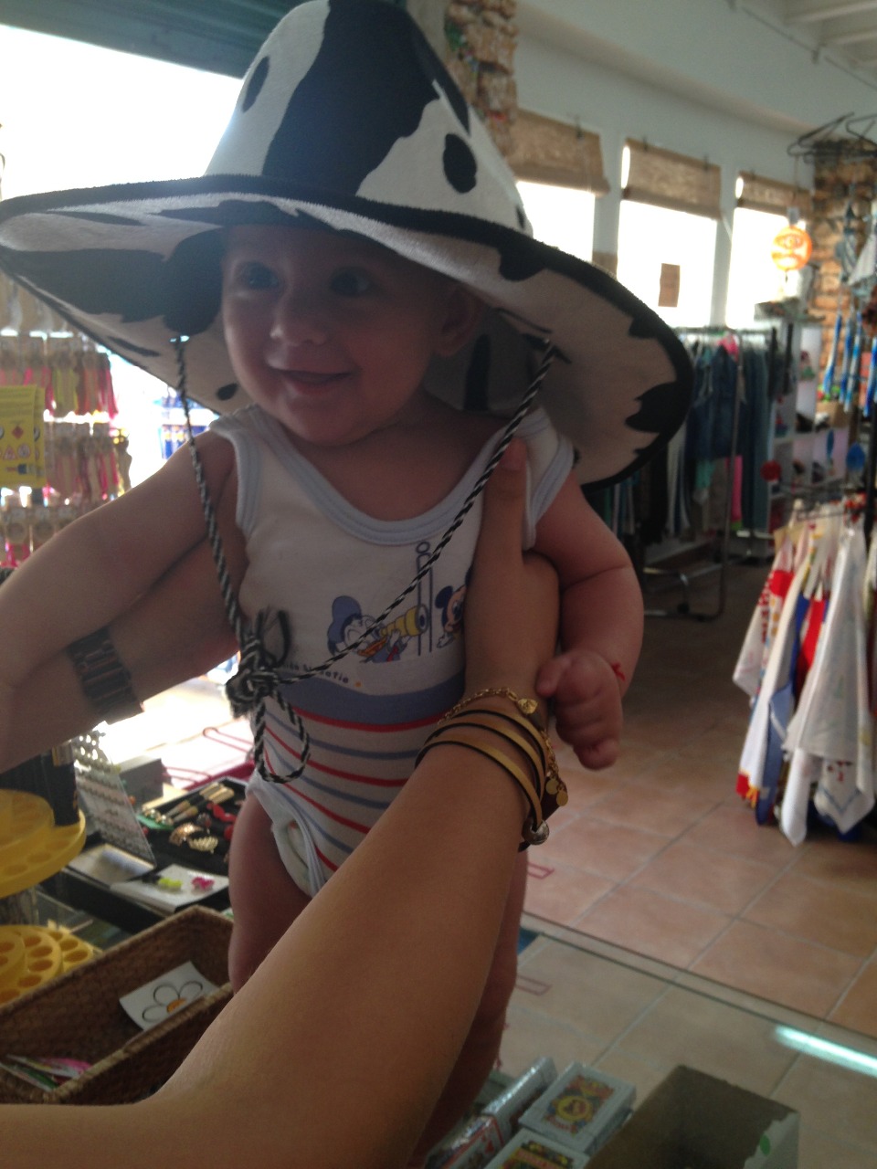 Éste fue un día de aburrimiento. Aquí lo importante no es la ropa sino los accesorios. Nos divertimos muchisimo yo, mi compañera de trabajo y mi niño. Pobrecito, le probamos un monton de sombreros, gafas, le pusimos todo lo que se le podía poner... y el encantado... se rió mucho :D